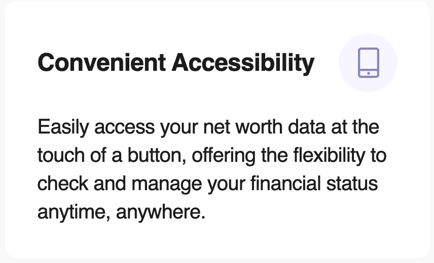 Record information about your assets, liabilities and outgoings to help manage and track your worth for easy financial management. With your financial and investment information all in one place, you can see your Net Worth whenever and wherever you like at the touch of a button.