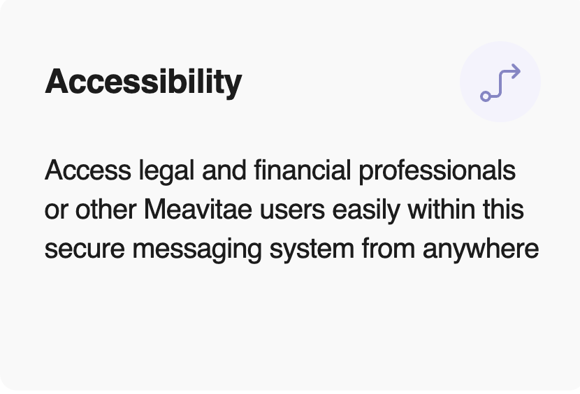 If you want to enhance your value, MeaVitae, with your consent, can connect you to trusted third-party advisors. Planning ahead can be reassuring. Our secure platform enables confidential communication and file sharing with professionals, helping you take charge of your future.